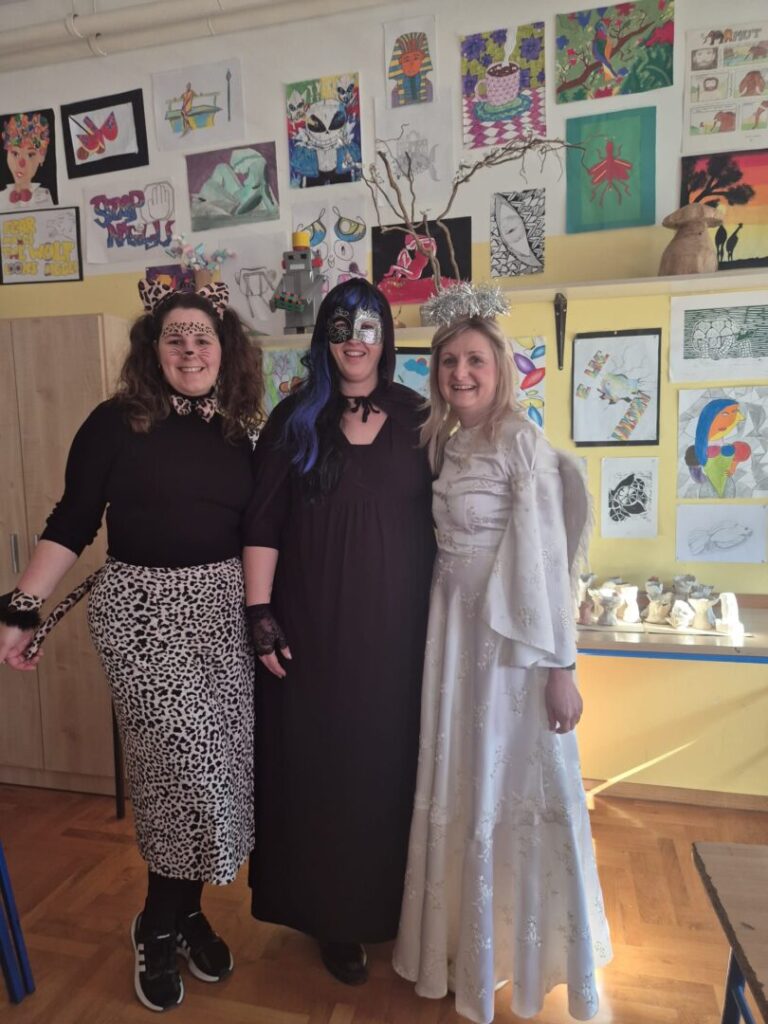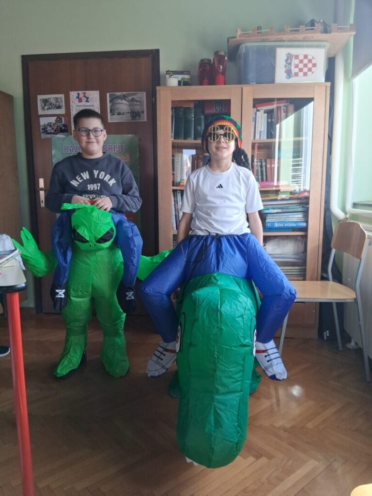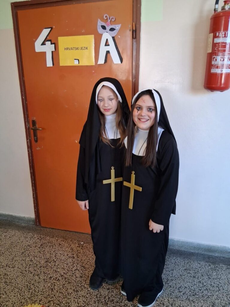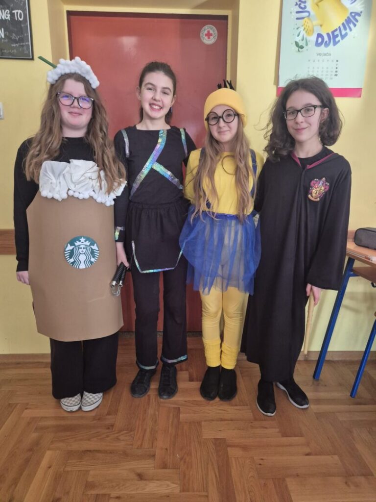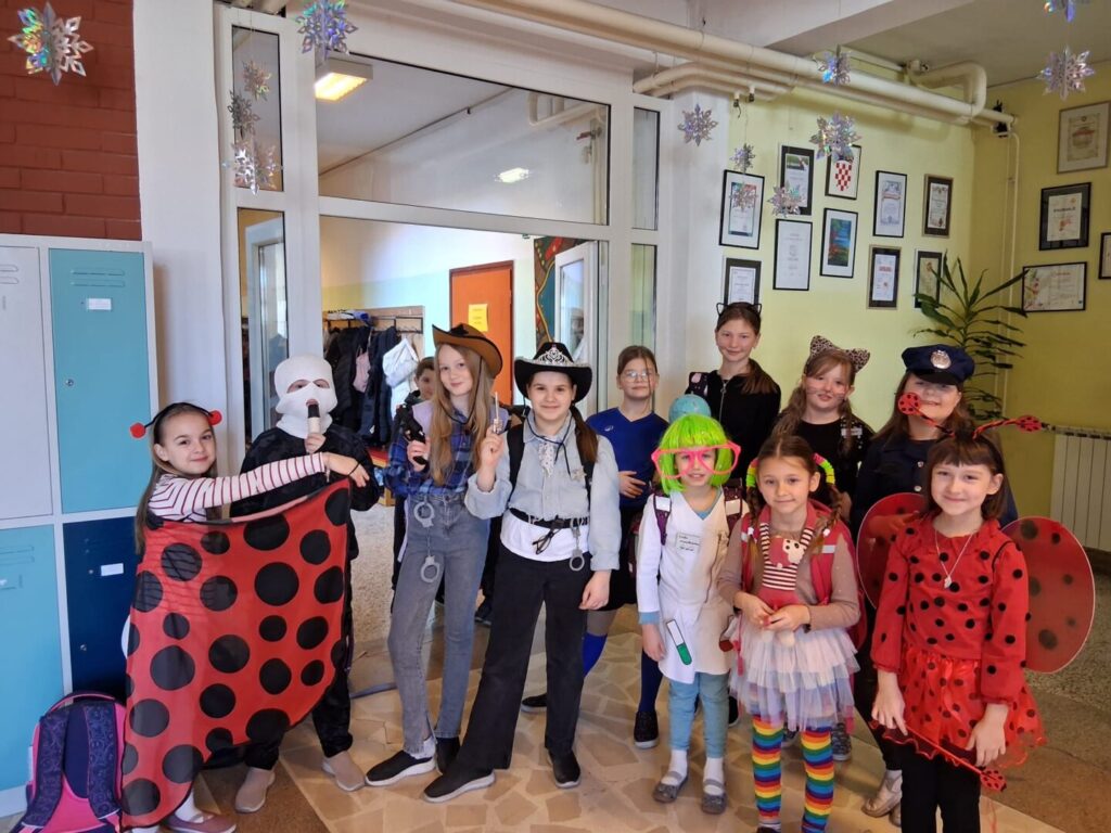 Danas su maškare, pokladni utorak, fašnik. I u našoj školi je bilo veselo i šareno. Naši učenici, ali i djelatnici, potrudili su se i pokazali svoju kreativnost i maštovitost. Bilo je tu raznih maski-kauboja, banana, detektiva, mački. Svi su se dobro zabavljali. Harry Potter je pokazivao čaroliju, Charlie Chaplin je nasmijavao okupljene, a Pipi Duga Čarapa je došla bez konja. Bez obzira na dinosaure, zombije i lopove, straha nije bilo. Dobra energija se širila školom, a smijeha i igre nije nedostajalo.