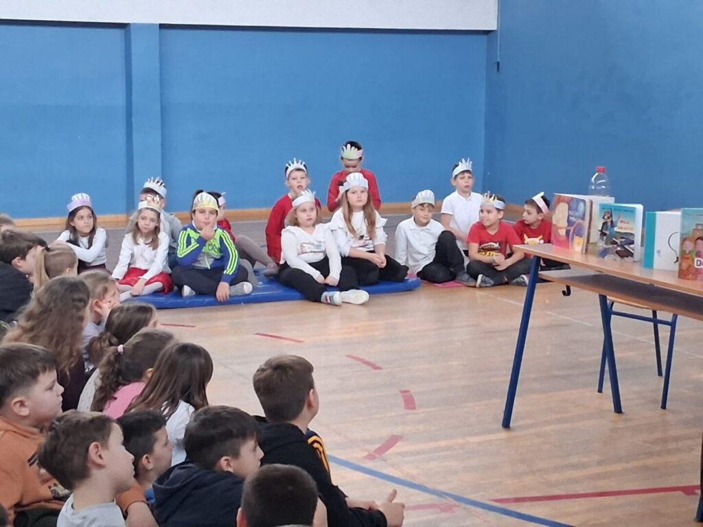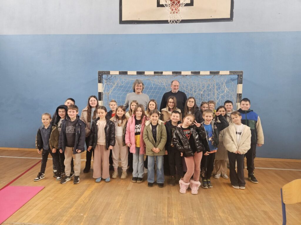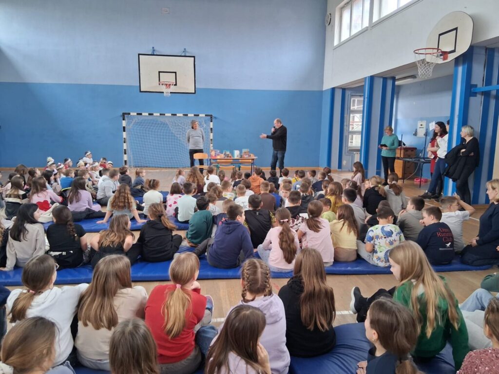 Danas nam je u pratnji pisca Hrvoja Kovačevića došao u goste Robert Mlinarec, pisac, urednik, prevoditelj. Dugogodišnji je urednik i glavni urednik niza biblioteka u više izdavačkih kuća. Objavljuje prozu, poeziju i prijevode u domaćim i stranim časopisima, a do sada je prevođen na trinaest jezika. Učenicima nižih razreda predstavio je svoje slikovnice Mali noćni pomagači, Dobro došli u školu, Tkači snova te i roman Moji grafiti za koji je dobio Nagradu Mato Lovrak za najbolji roman za mlade objavljen 2006.godine. Zatim su učenici postavljali razna pitanja, između ostalog kako mu se zovu djeca(Maks I Maja), koja je prva knjiga koju je izdao (Georginine suze) te koliko godina je tad imao (30 god. ), koja mu je najdraža knjiga iz djetinjstva (Petar Pan) itd. Saznali smo da je oduvijek volio knjige, do sada ih je napisao trideset, prvo je pisao za odrasle, a nakon rođenja djeteta počeo pisati za djecu .Priručnik za djecu Šumski bonton je zadnja knjiga koju je napisao. Trenutno piše jednominutnu priču.