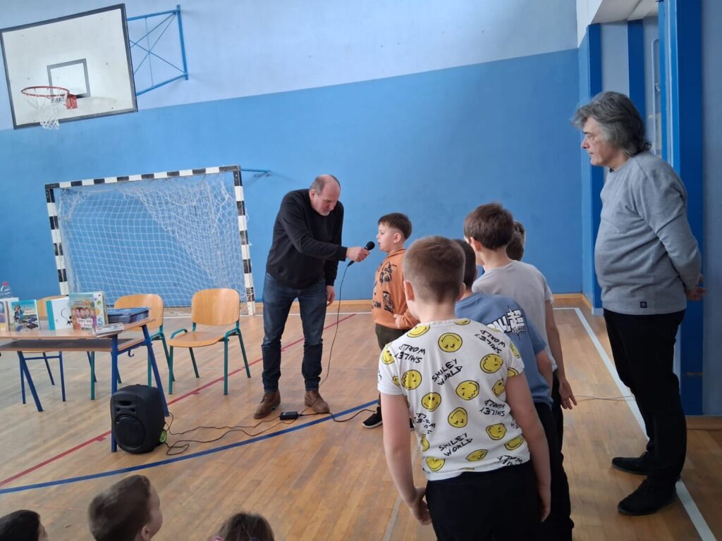 Hvala Hrvoju Kovačeviću koji nam je omogućio ovaj susret te Robertu Mlinarcu na posjeti te na slikovnicama i romanima koje nam je darovao.
